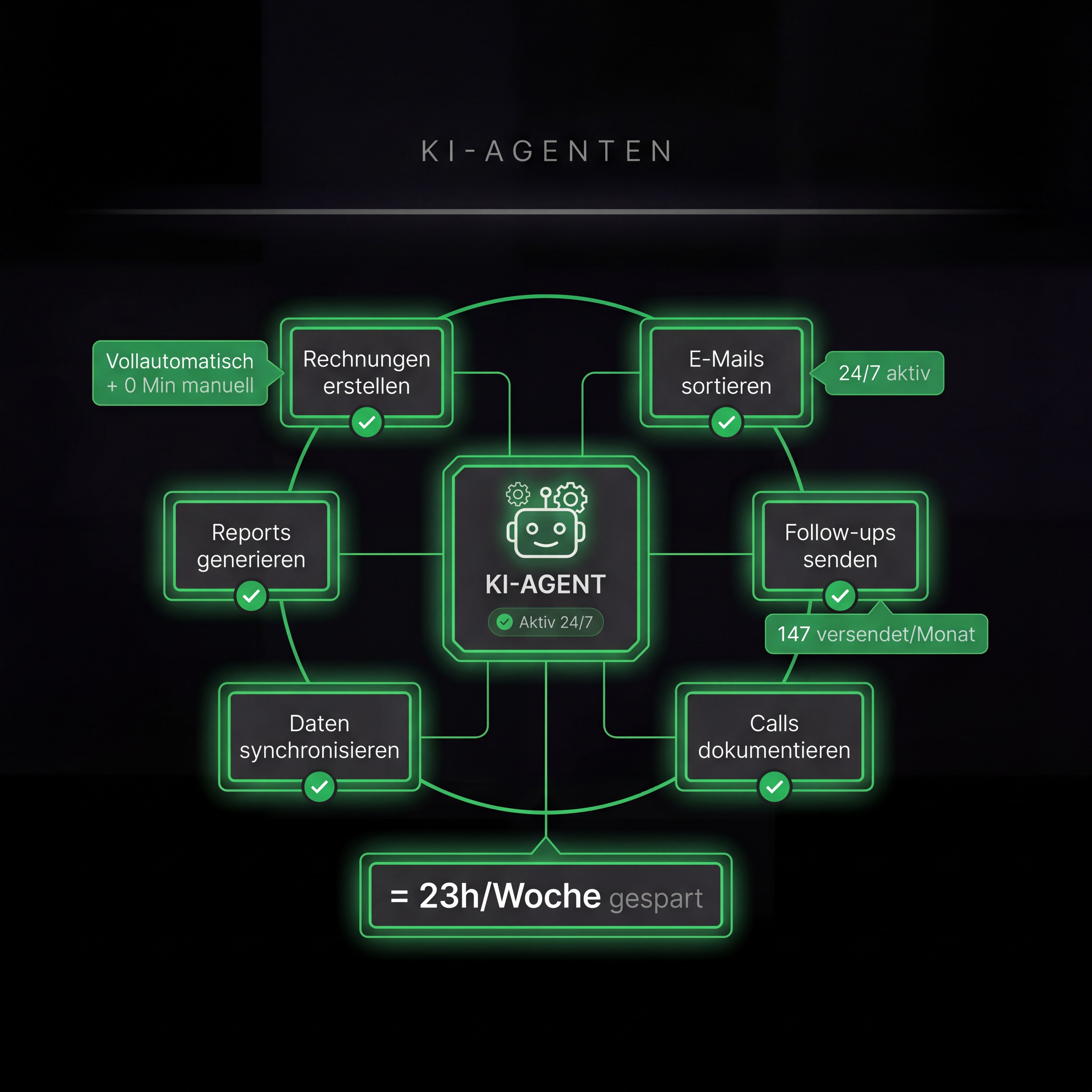 Du löschst keine Brände mehr. Dein Team ertrinkt nicht mehr im Tagesgeschäft. Die Agenten machen die Drecksarbeit. Du hast Zeit für das, wofür du das Business eigentlich gegründet hast.