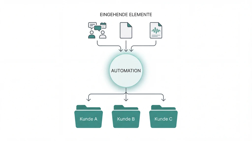 Ordner legen sich von selbst an. Transkripte landen im richtigen Projekt. Jeder weiß, wo was liegt – ohne zu fragen. Die 20-Minuten-Suche nach „der einen Datei von letzter Woche"? Gibt's nicht mehr.