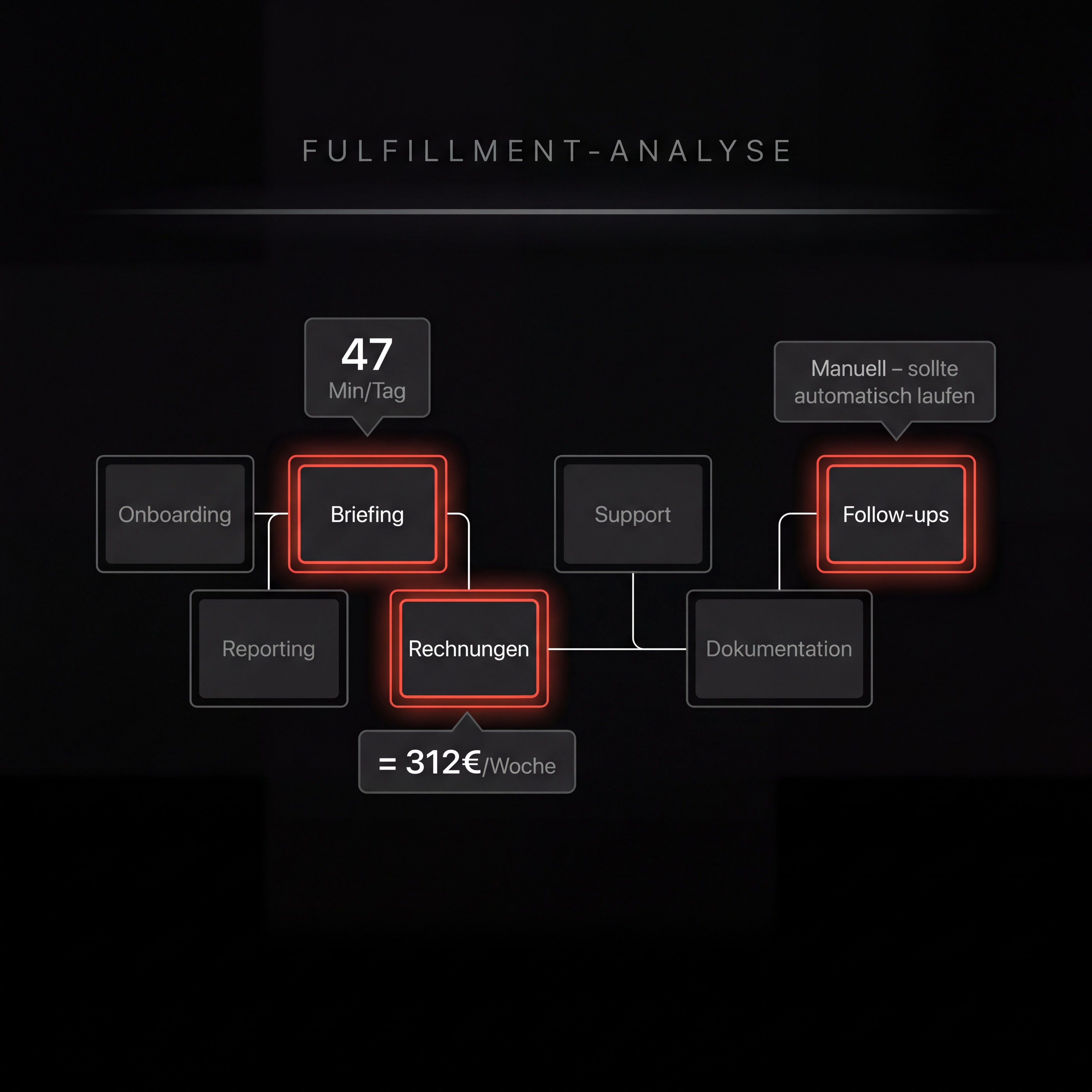 Du weißt, dass es hakt. Du weißt nur nicht, wo. Wir zeigen dir schwarz auf weiß, welche Aufgaben dich täglich Geld kosten – und längst automatisiert sein sollten.